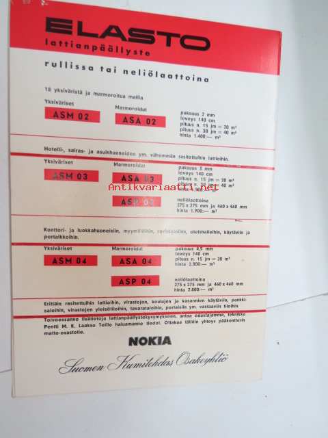 Nokia Elasto lattianpäällyste -myyntiesite / brochure
