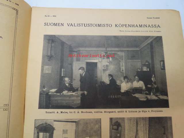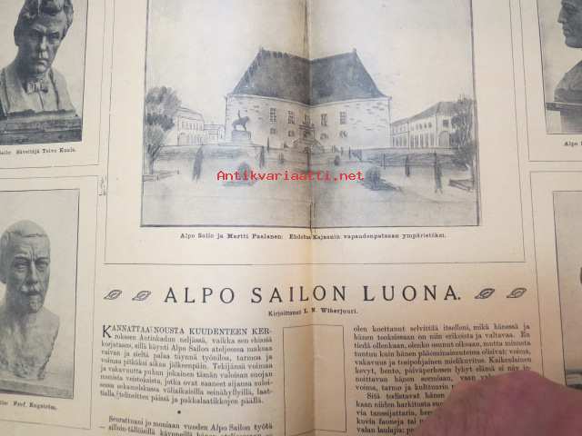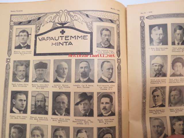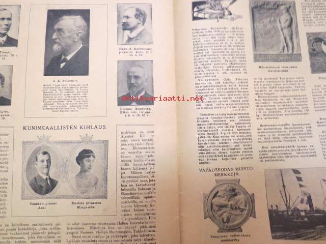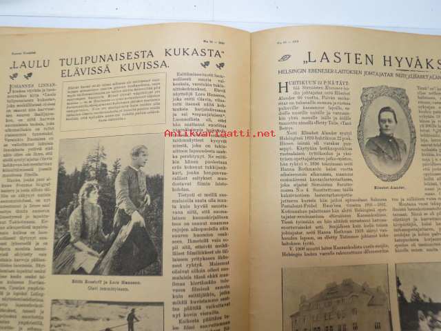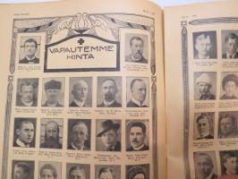 Suomen Kuvalehti 1919 nr 16, ilmestynyt 19.4.1919, sis. mm. seur. artikkelit / kuvat / mainokset, Kansikuva (+ artikkeli) "Vapaudenpatsas" - Alpo Sailo, Ylioppilaskunnan kunnianosoitus valtionhoitaja Mannerheimille, Vapaussodassamme haavoittuneiden hoito - Kuvia Tilkan sotilassairaalasta, Suomen valistustoimisto Köpenhaminassa, Vapautemme hinta - kuvia taisteluissa kaatuneista valkoisista, Laulu tulipunaisesta kukasta elävissä kuvissa, Helsingin Ebeneeser-laitoksen johtajatar neiti Elisabet alander 60-vuotias, Yrjö Somersalo & Kni Oy autotuontimainos, ym. -weekly magazine22 x 29 cm.