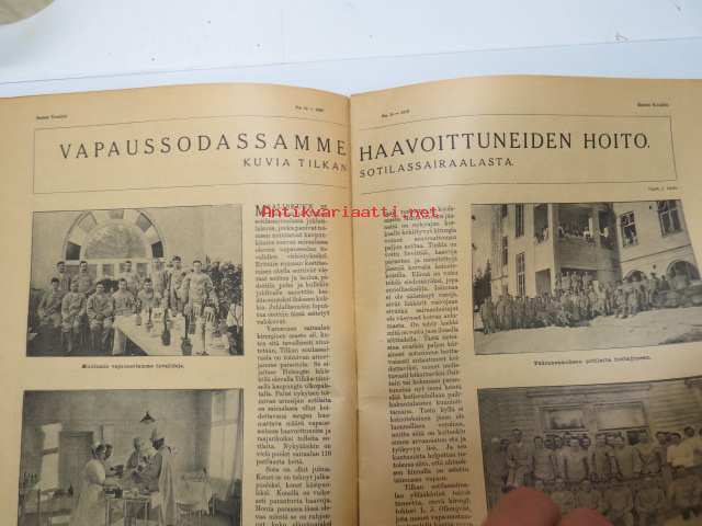 Suomen Kuvalehti 1919 nr 16, kansikuva Vapaudenpatsas -Alpo Sailo, Vapaussodassamme haavoittuneiden hoito -kuvia Tilkan sotilassairaalasta, ym.