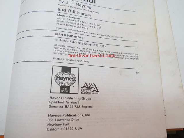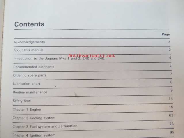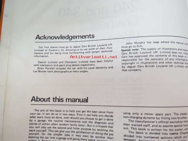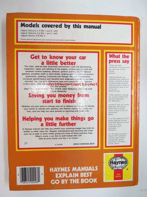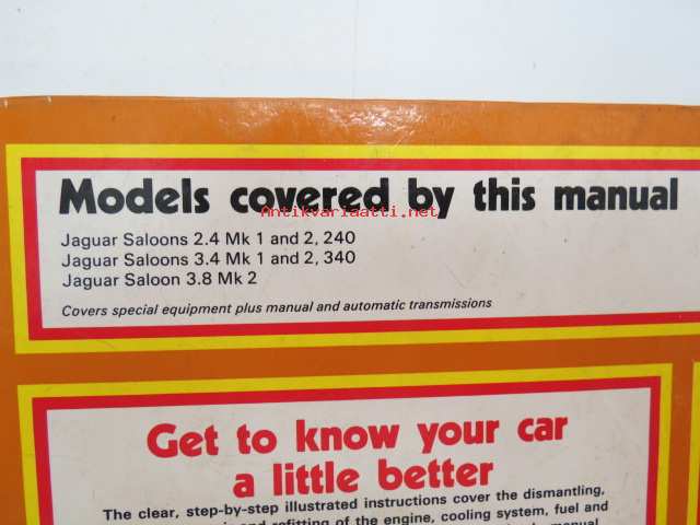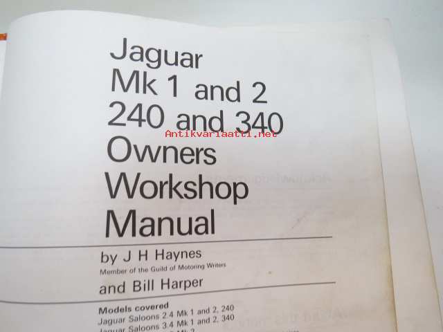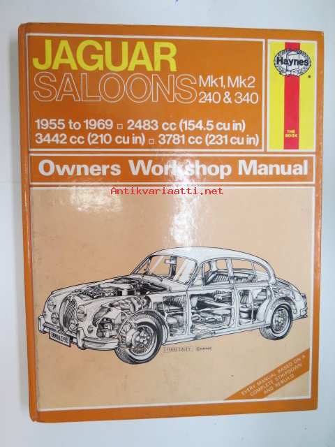 Jaguar Saloons Mk1, Mk2 240 & 230 1955 to 1969, 2483 cc (154.5 cu in) 3442 cc (210 cu in), 3781 cc (231 cu in) Haynes Owners Workshop Manual -korjauskäsikirja englanniksi