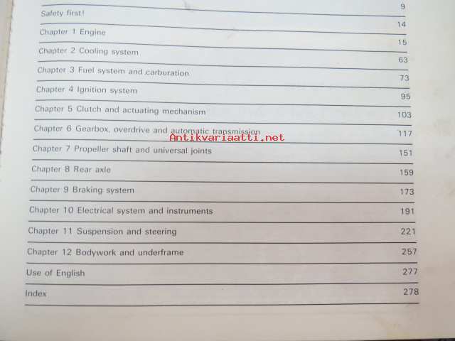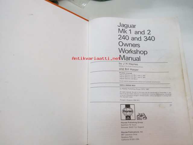 Jaguar Saloons Mk1, Mk2 240 & 230 1955 to 1969, 2483 cc (154.5 cu in) 3442 cc (210 cu in), 3781 cc (231 cu in) Haynes Owners Workshop Manual -korjauskäsikirja