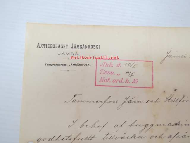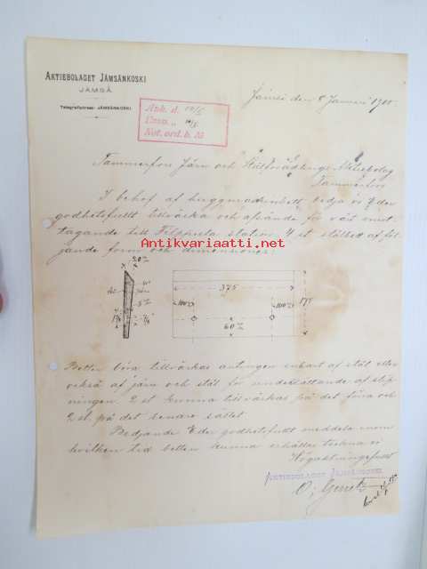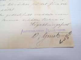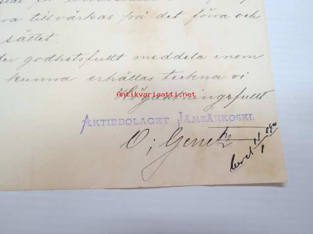 Aktiebolaget Jämsänkoski, Jämsä, 8.1.1900 - Suomen Sahanterätehdas Oy / Finska Sågblads Aktiebolag, Tampere -asiakirja, allekirjoitus O. Genetz -business document