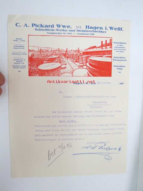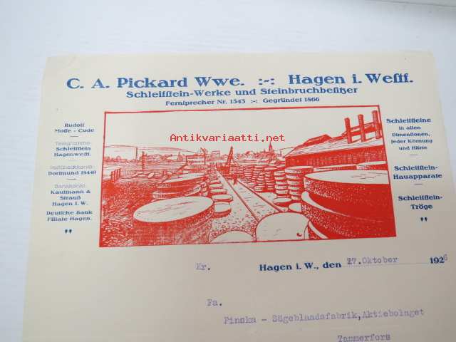 C.A. Picard Wwe, Hagen i Westfalen, Sleifsteinwerke und Steinbruchbesitzer, 27.10.1926 - Suomen Sahanterätehdas Oy / Finska Sågblads Aktiebolag, Tampere