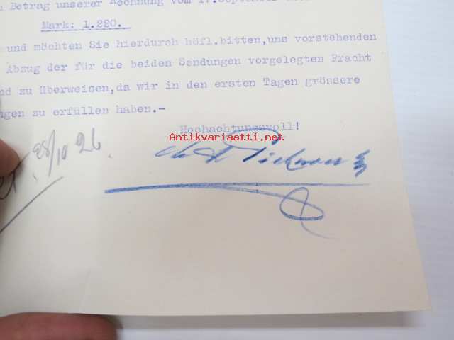 C.A. Picard Wwe, Hagen i Westfalen, Sleifsteinwerke und Steinbruchbesitzer, 27.10.1926 - Suomen Sahanterätehdas Oy / Finska Sågblads Aktiebolag, Tampere -asiakirja, allekirjoitus Pickard -business document