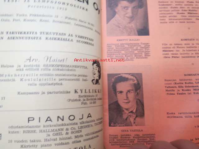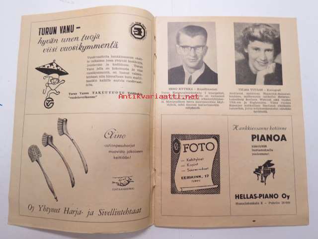 | Saatavilla | 1 kpl | | Julkaisuvuosi | 1958 | | Sivuja | 28 | | Kunto | K2 | | Sidonta/painoasu | Nidottu (pehmeäk.) | | Kielet | Suomi |