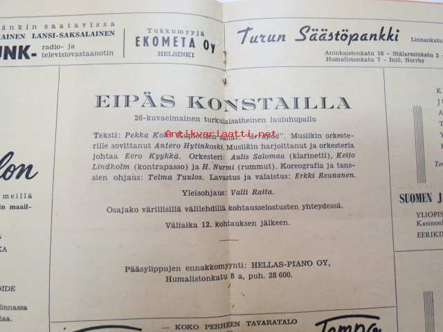 Turun Pieni Teatteri 1958-59 - Eipäs konstailla -näytelmän käsiohjelma -theatre program