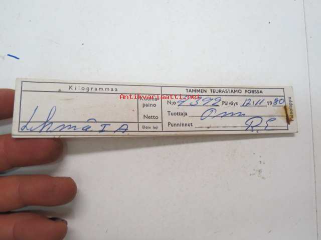 Tammen Teurastamo - Forssa - Lehmä I A - teuraspainolappu, 17.11.1980 - weight document of a cow at slaughterhouse