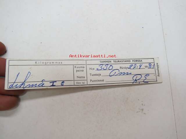 Tammen Teurastamo - Forssa - Lehmä I C - teuraspainolappu, 27.4.1981 - weight document of a cow at slaughterhouse
