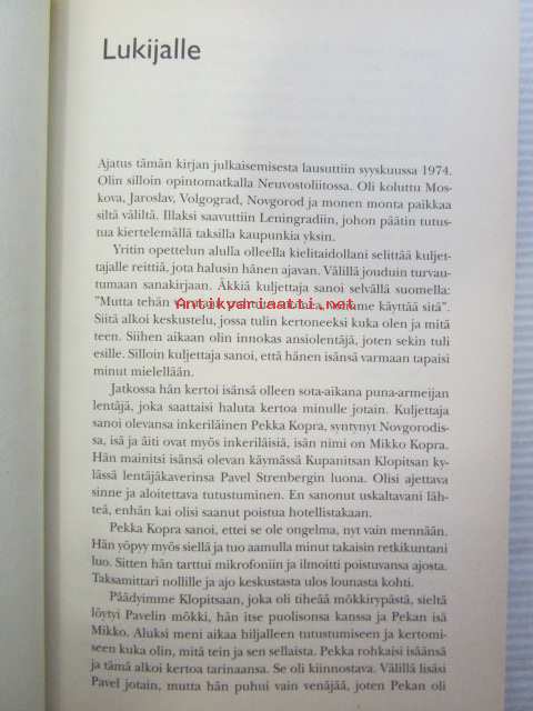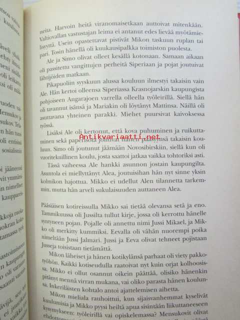 | Saatavilla | 1 kpl | | Julkaisuvuosi | 2002 | | Sivuja | 286 | | Painos | 1. | | Kunto | K2 | | Sidonta/painoasu | Sidottu (kansipaperit) | | ISBN | 951-20-6170-8 | | Kielet | Suomi |