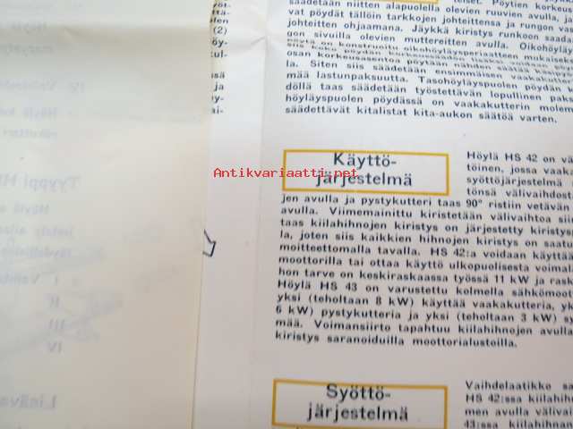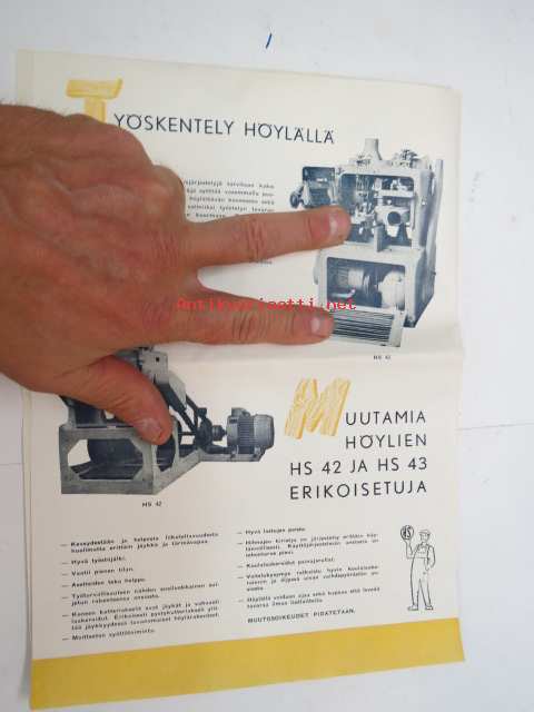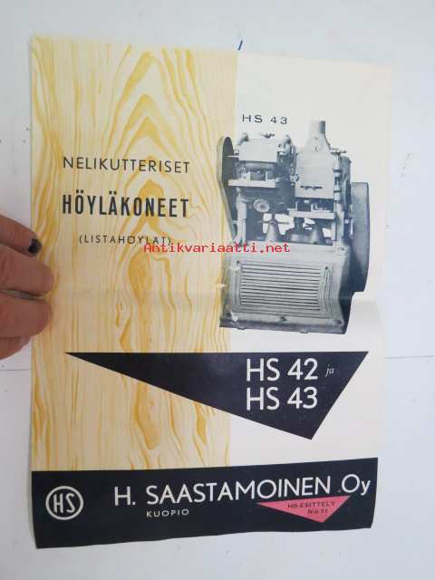 H. Saastamoinen Oy - Kuopio, nelikutteriset höyläkoneet (listahöylät) HS 42, HS 43 -myyntiesite / brochure