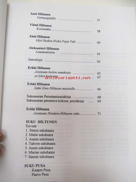 Joentaan Hinduin-Hiltusen sukuseura ry: - Ruskia Hieka Pojat -sukukirja / family book