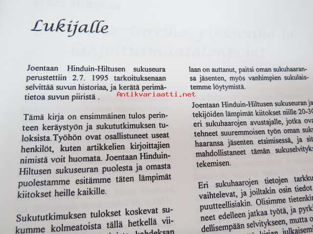 Joentaan Hinduin-Hiltusen sukuseura ry, 199621 x 30 cm.