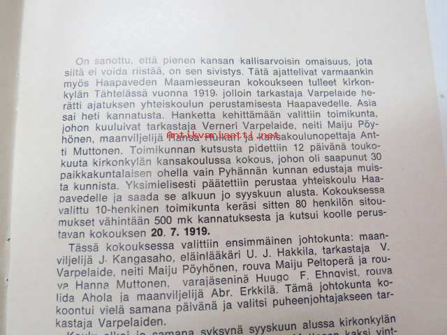 Haapaveden yksityisen oppikoulun 50-vuotinen taipale -historiikki / school history
