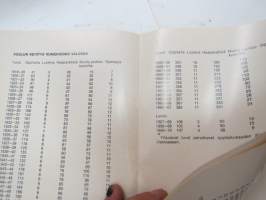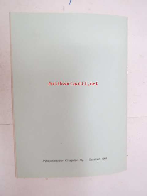 | Saatavilla | 3 kpl | | Julkaisuvuosi | 1969 | | Sivuja | 21 | | Painos | 1. | | Kunto | K3 | | Sidonta/painoasu | Nidottu (pehmeäk.) | | Kielet | Suomi |