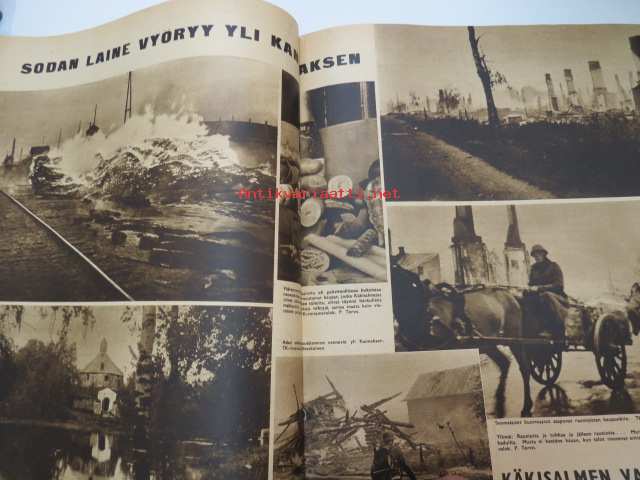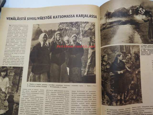 Suomen Kuvalehti 1941 nr 35, ilmestynyt 12.7.1941, sis. mm. seur. artikkelit / kuvat / mainokset; Kansikuva Pioneerisilta Karjalassa, Mies ja vuokaruoka, Hakapatteri ampuu ja siirtyy eteen, Sodan silmä, Mannerheim-ristin ritarit Talvela - Lagus - Rättö esittelyssä, Sodan laine vyöryy yli Kannaksen, Ilmapommitus täyttää 30 vuotta, Euroopan manner vavahtelee, Sotapohjan ystäviä, Venäläistä siviiliväestöä katsomassa Karjalassa, ym. -weekly magazine25 x 31 cm.