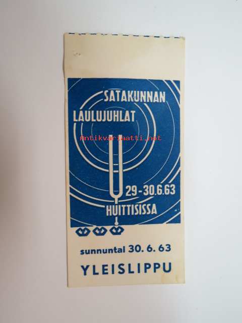 Satakunnan Laulujuhlat 29.-30.6.1963 Huittinen -pääsylippu / entrance ticket
