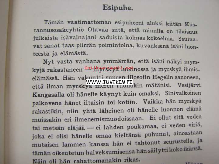 | Saatavilla | 1 kpl | | Julkaisuvuosi | 1931 | | Sivuja | 167 | | Painos | 1. | | Kunto | K2 | | Sidonta/painoasu | Kuvitettu kovakantinen | | Kielet | Suomi |