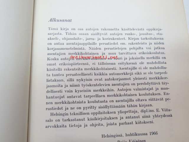 Reijo Väisänen, Otava, 196615 x 21 cm kirja. Ammattienedistämislaitoksen ammattikirja nr 50. Perusteellinen esitys auton rakenteesta.