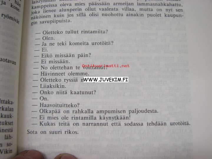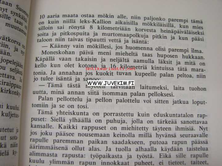 | Saatavilla | 1 kpl | | Julkaisuvuosi | 1975 | | Sivuja | 145 | | Painos | 1. | | Kunto | K3 | | Sidonta/painoasu | Nidottu (pehmeäk.) | | Kielet | Suomi |