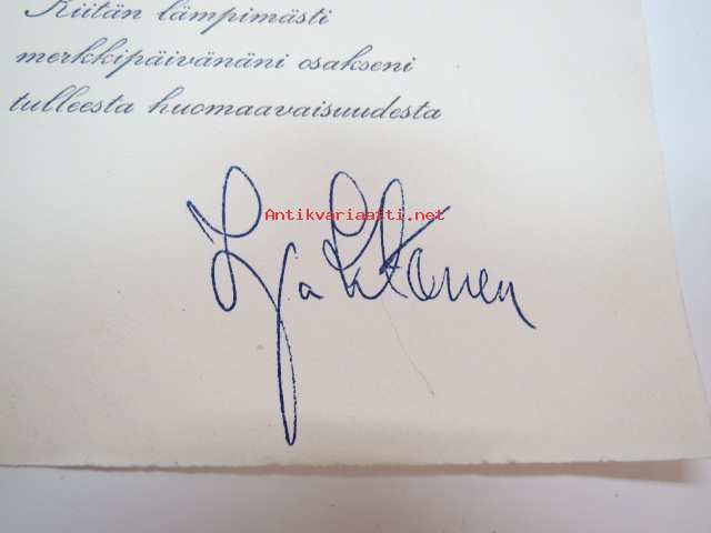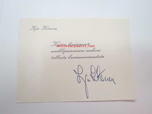 Irja Ketonen -kiitoskortti, alkuperäinen omakätinen nimikirjoitus -card with original signature / autograph