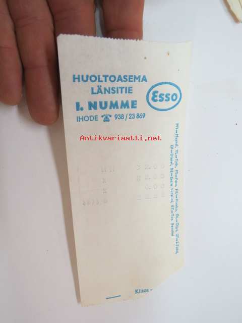 Esso Huoltoasema Länsitie I. Numme, Ihode, huoltoasemakuitti ?.?.1970 -receipt