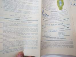| Saatavilla | 1 kpl | | Julkaisuvuosi | 195? | | Kunto | K2 | | Sidonta/painoasu | Pienpainate | | Kielet | Englanti, Ranska, Ruotsi, Saksa |