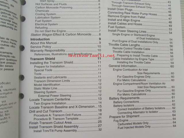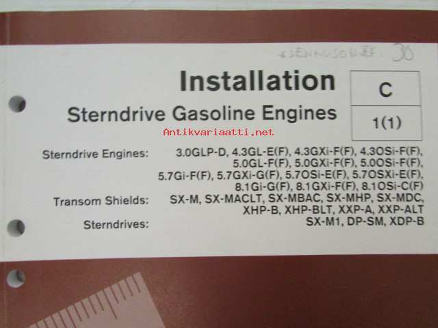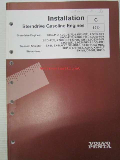Volvo Penta Installation C - Sterndrive Gasoline Engines - bensiinikäyttöisen sisäperämoottorin asennus, katso tarkemmat mallien merkinnät kuvasta.