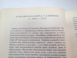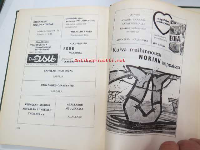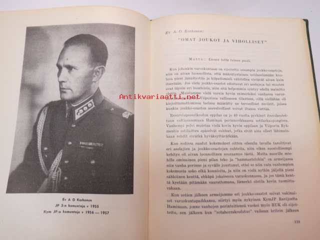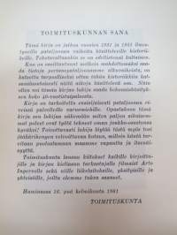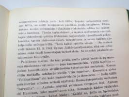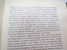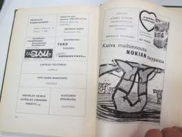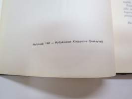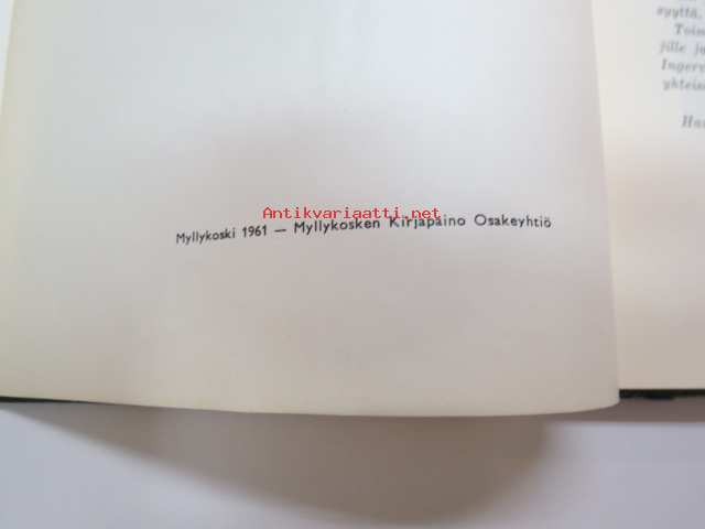 | Saatavilla | 1 kpl | | Julkaisuvuosi | 1961 | | Sivuja | 196 | | Painos | 1. | | Kunto | K2 | | Kulunut, sidos löysä / rikki - worn out, loose binding | | Sidonta/painoasu | Sidottu (kovak.) | | Kielet | Suomi |