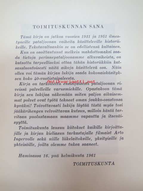 Toimituskunta, Kymen Jääkäripataljoona, 196116 x 21 cm.