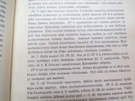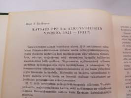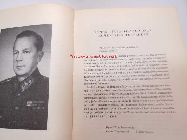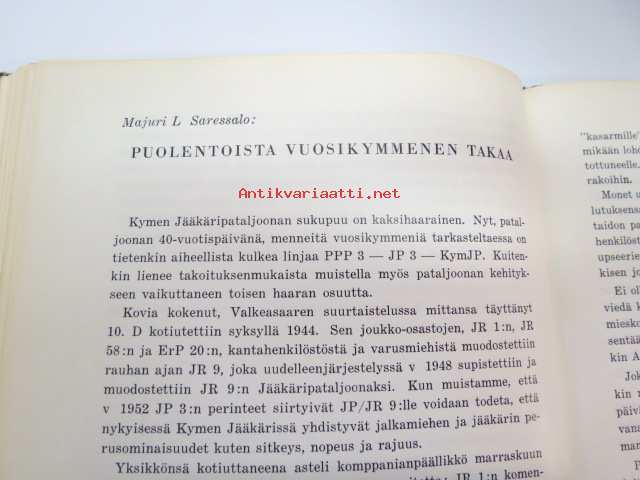 Kymen Jääkäripataljoona (50 vuotta), sisältää joukko-osaston histoariaa, osallistuminen sotiin, eri kirjoittajien artikkeleita -military unit history