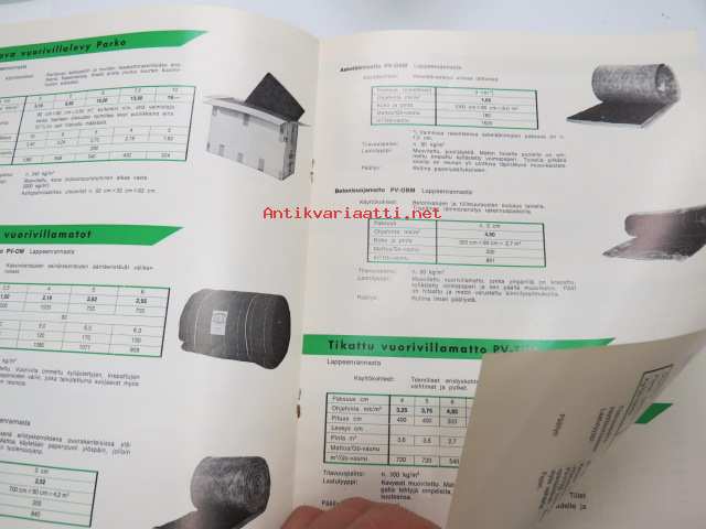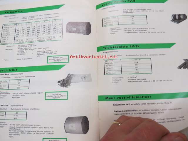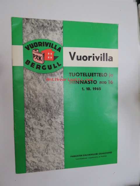 P&K Vuorivilla - Bergull - Tuoteluettelo ja hinnasto nr 16, 1.10.1965 / isolation material brochure
