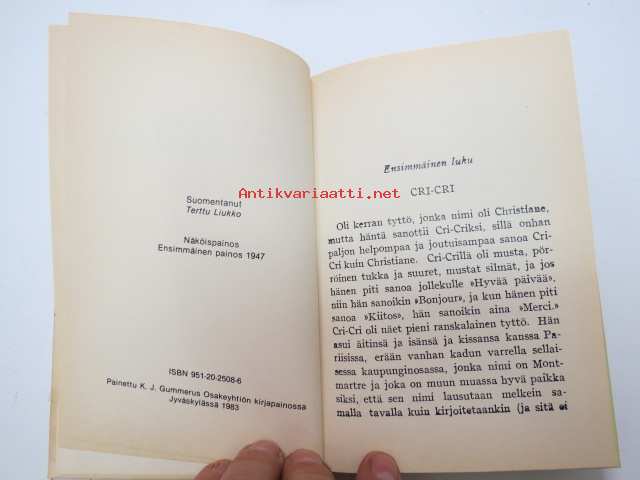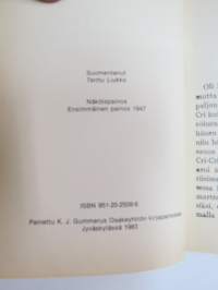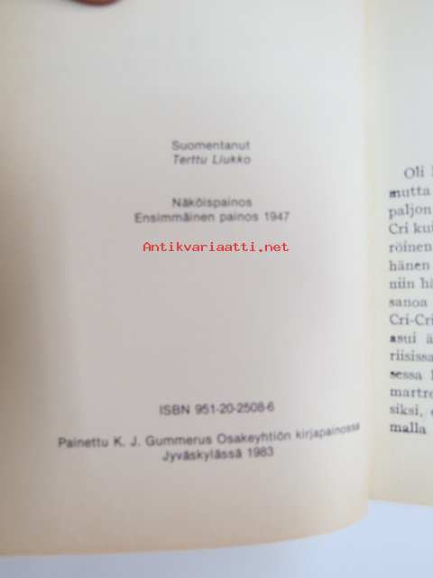 | Saatavilla | 1 kpl | | Julkaisuvuosi | 1983 | | Sivuja | 113 | | Painos | Näköispainos vuoden 1947 ensimmäisestä painoksesta | | Kunto | K2 | | Sidonta/painoasu | Kuvitettu kovakantinen | | ISBN | 951-20-2508-6 | | Kielet | Suomi |