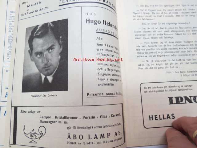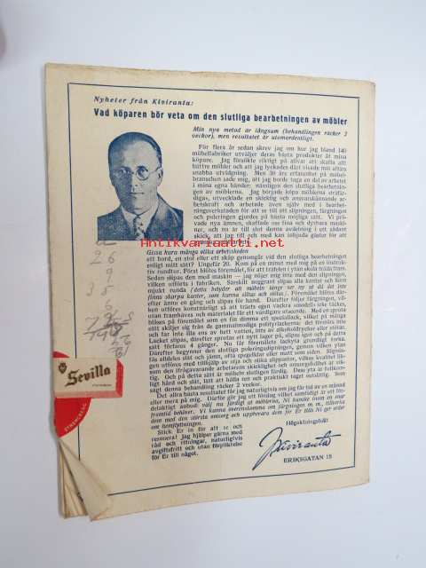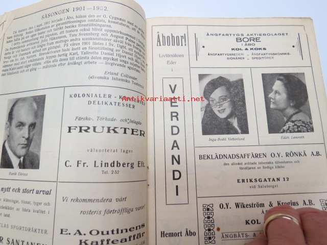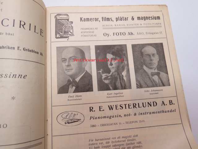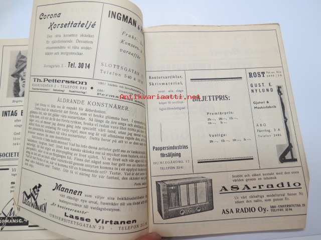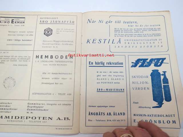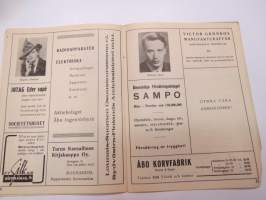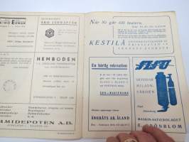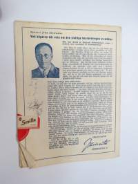 | Saatavilla | 1 kpl | | Julkaisuvuosi | 1940 | | Sivuja | 20 | | Kunto | K2 | | Sidonta/painoasu | Nidottu (pehmeäk.) | | Kielet | Ruotsi |