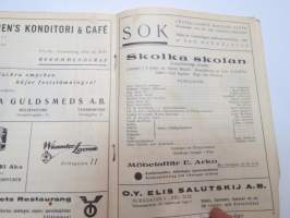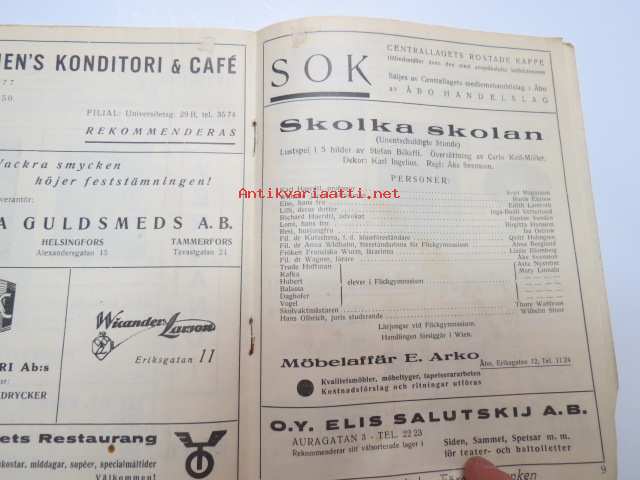Åbo Svenska Teater 1940-1941 Program - Skolka skolan (Unentschuldige Stunde) -teatterin ohjelmalehtinen / theatre program