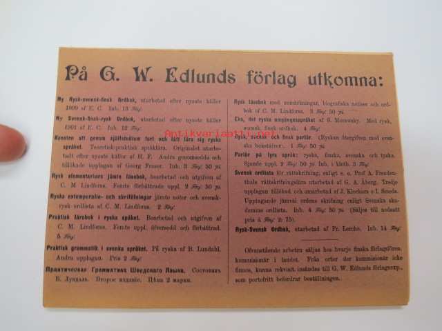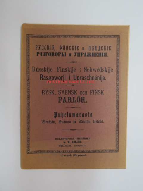Puheluwarasto Wenäjän, Suomen ja Ruotsin kielellä. / Rysk, Svensk och Finsk parlör. / Russkije, Finskije i Schwédskije Rasgoworji i Upraschnénija. /