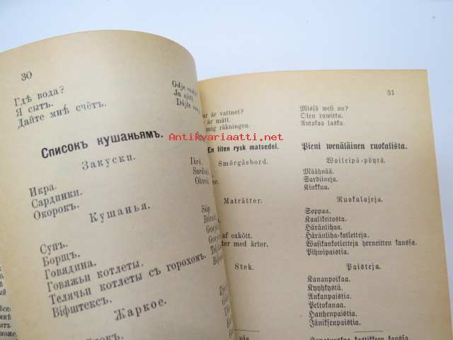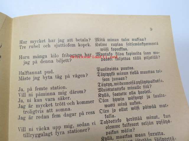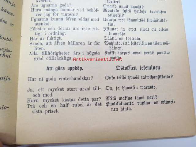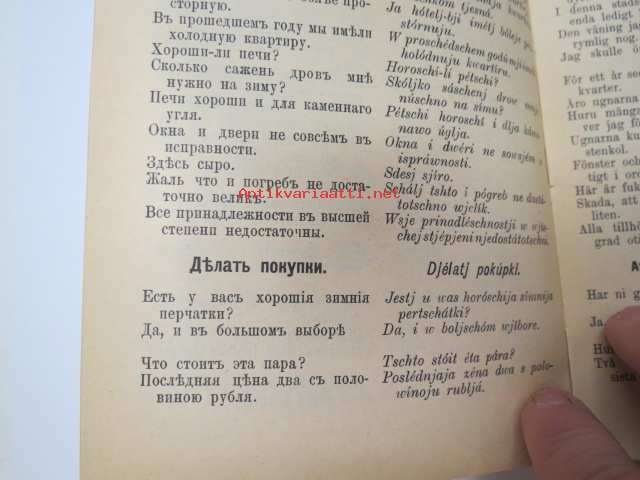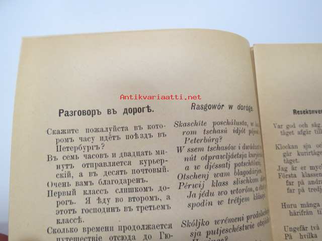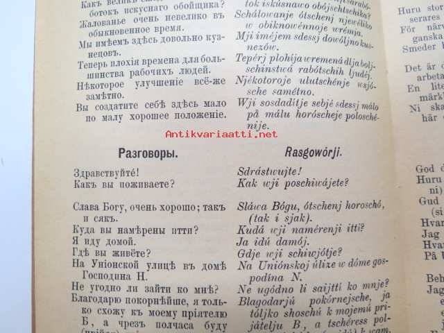 Puheluwarasto Wenäjän, Suomen ja Ruotsin kielellä. / Rysk, Svensk och Finsk parlör. / Russkije, Finskije i Schwédskije Rasgoworji i Upraschnénija. / Русские финские и шведские разговари и упраснения -Russian - finnish - swedish phrases