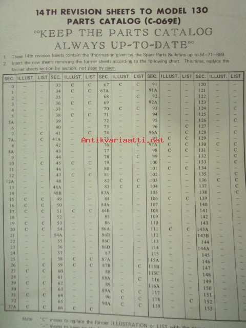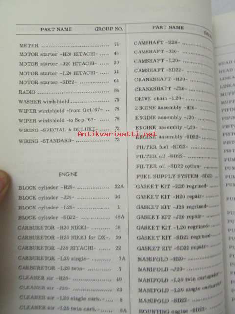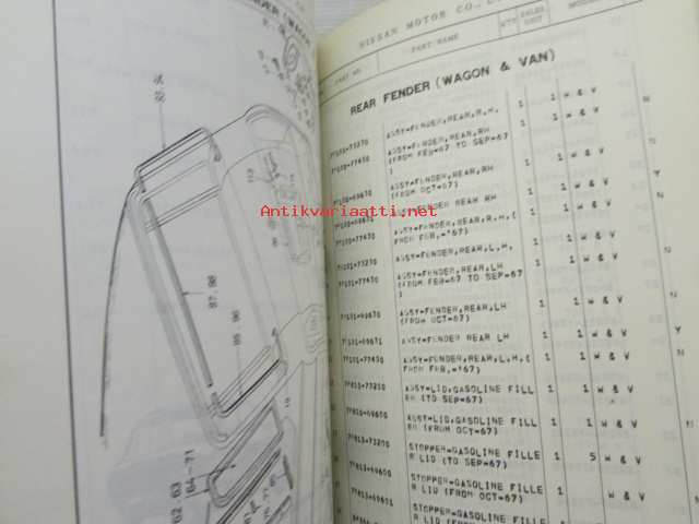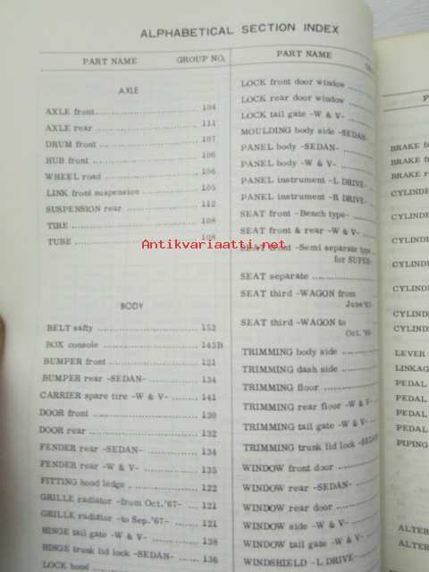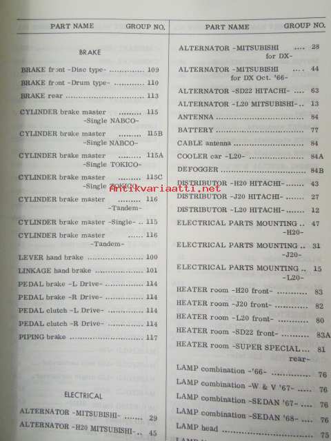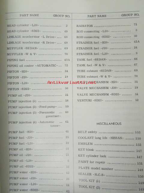 Nissan Cedric Model 130 series, Parts Catalog Pub. No C-069E -varaosaluettelo