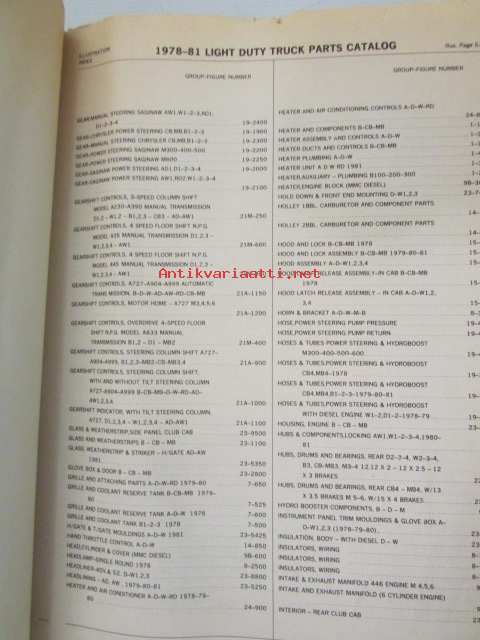 Chrysler Motors Light Duty Truck 1978-81, Parts Catalog -varaosaluettelo