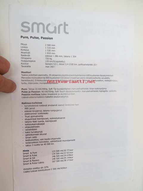 Smart Pure - Pulse - Passion -myyntiesite / sales brochure