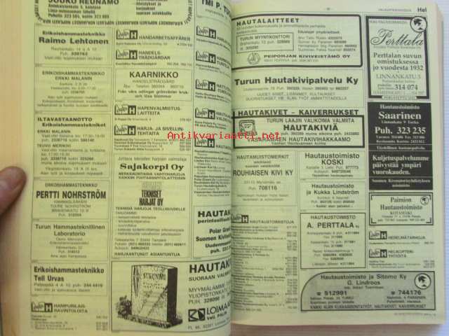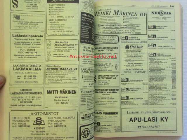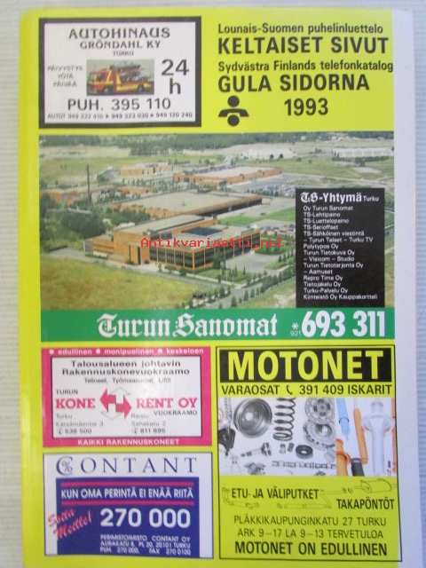 Lounais-Suomen puhelinluettelo Keltaiset sivut 1993