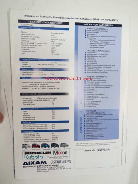 Aixam Evolution 400 -myyntiesite / sales brochure