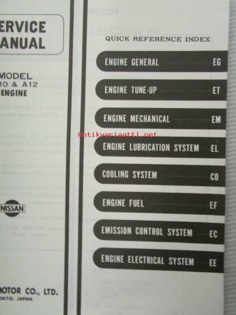 Nissan Motor Service Manual Model A10 & A12 Engine - Korjaamokäsikirja