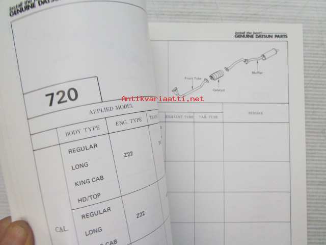 Nissan/Datsun Genuine Datsun Parts - Muffler 1982 - Datsun pakoputkisto varaosakirja