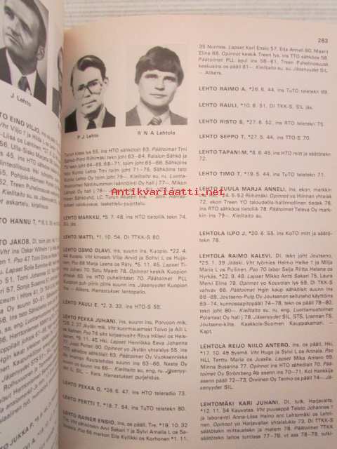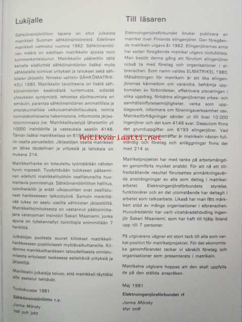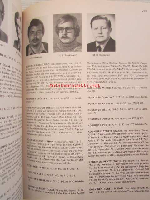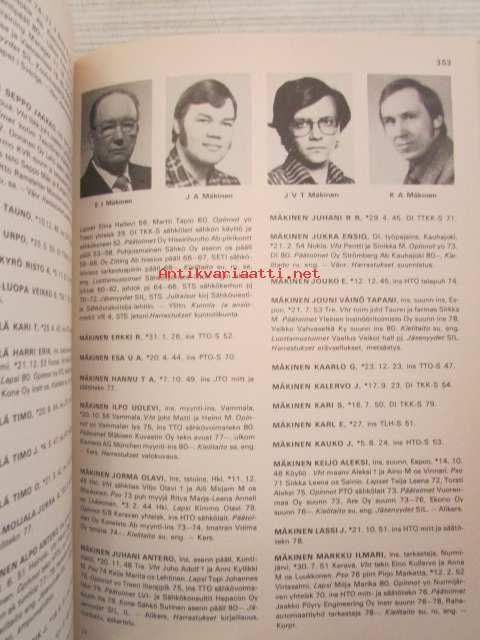 | Saatavilla | 1 kpl | | Julkaisuvuosi | 1981 | | Sivuja | 744 | | Kunto | K3 | | Kansipaperi K2 | | Sidonta/painoasu | Sidottu (kansipaperit) | | ISBN | 951-1-99316-1-9 | | Kielet | Suomi |