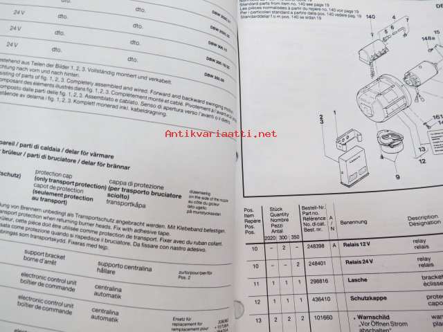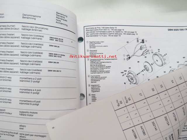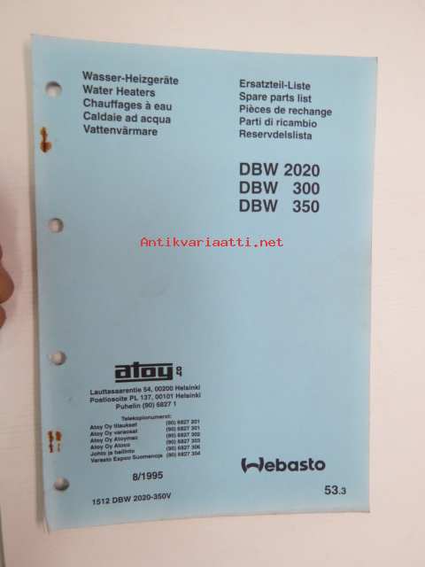 Webasto DBW 2020, DBW 300, DBV 350 53.3, 8/1995 Ersatzteil-Liste / Spare parts list / Pièces de rechange / Parti di ricambio / Reservdelslista -parts book for heaters
