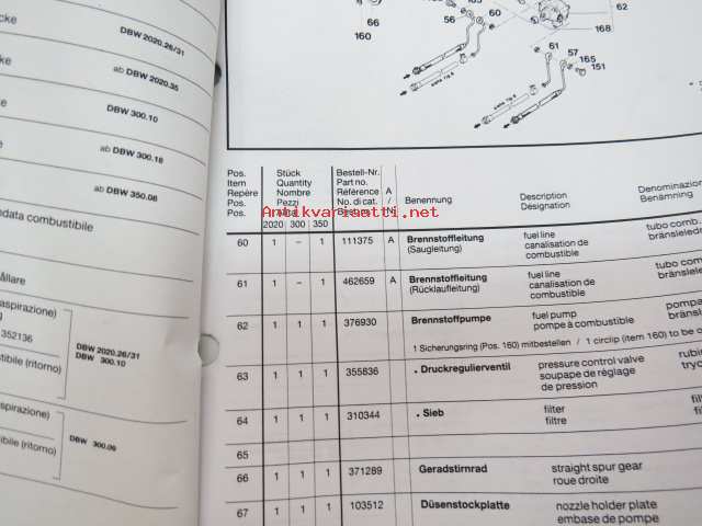 Webasto DBW 2020, DBW 300, DBV 350 53.3, 8/1995 Ersatzteil-Liste / Spare parts list / Pièces de rechange / Parti di ricambio / Reservdelslista -parts book for