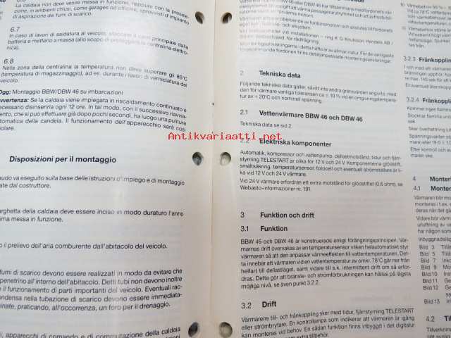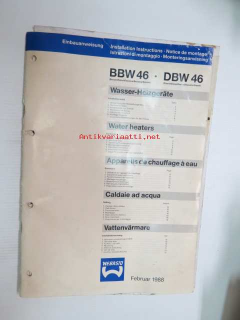 Webasto BBW 46 - DBW 46 1988 Installation Instructions -asennusohjeita