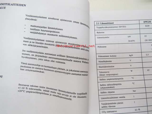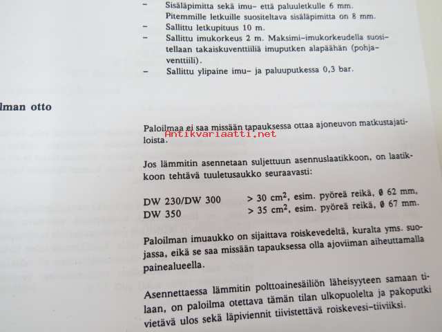 Webasto DW 230, 300, 350 Vesilämmityslaitteet - asennusohjeet Lokakuu 1992 -installation instructions in finnish