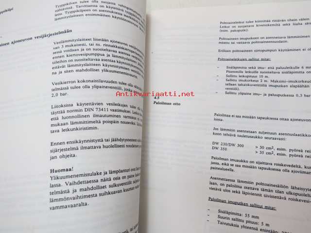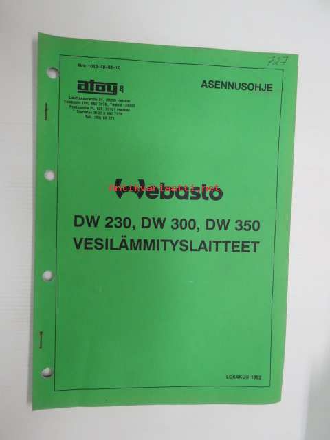 Webasto DW 230, 300, 350 Vesilämmityslaitteet - asennusohjeet Lokakuu 1992 -installation instructions in finnish