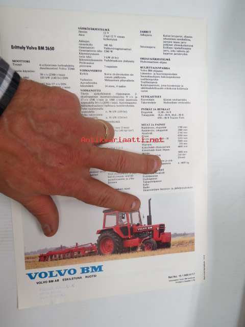 Volvo BM 2650 traktori -myyntiesite -farm tractor sales brochure